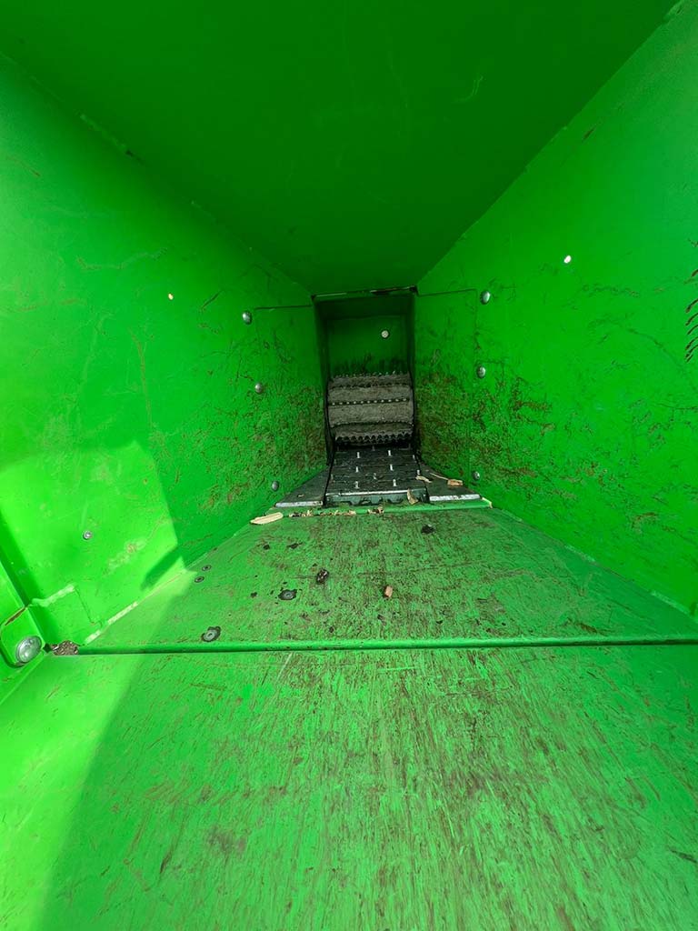 Gracias al innovador sistema de accionamiento, se eliminan todos los posibles atascos durante el procesamiento mediante una cadena dentada hidráulica. El sistema No-Stress de serie, con contador de horas, garantiza una alimentación correcta en función de la potencia disponible.